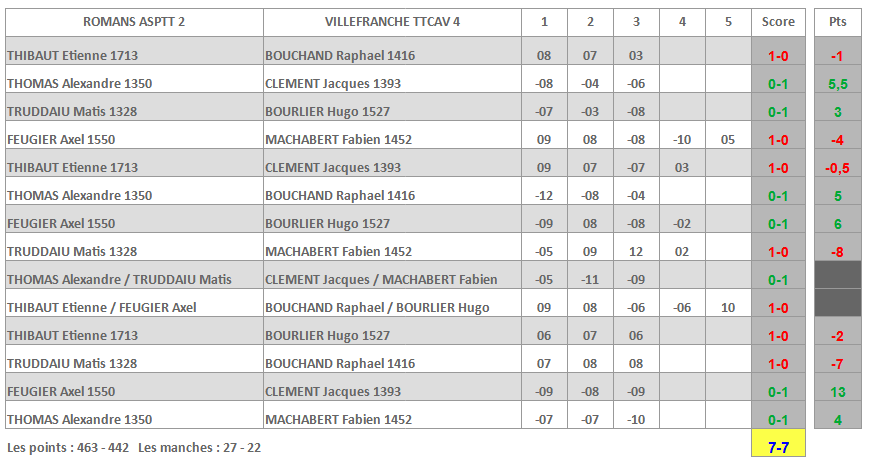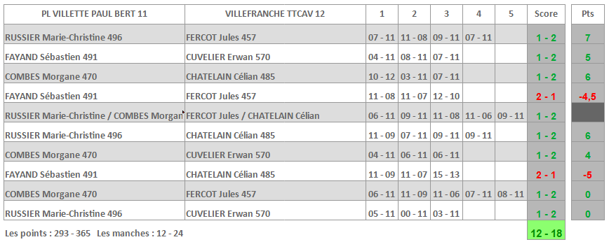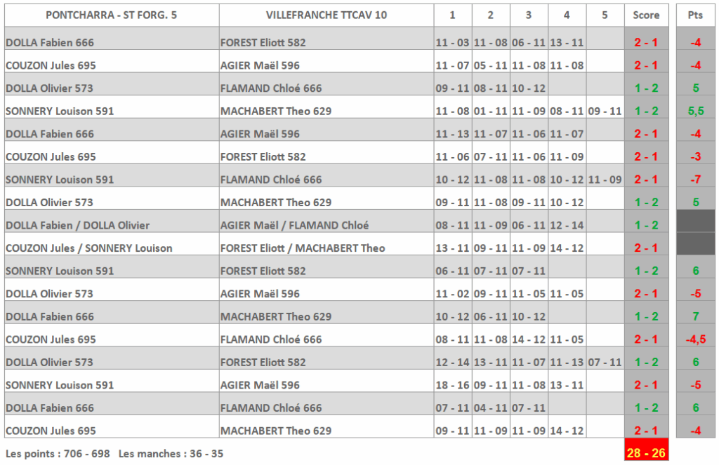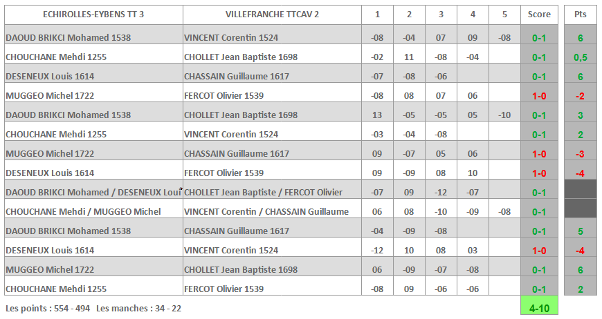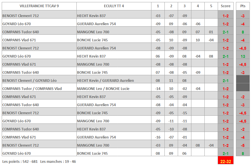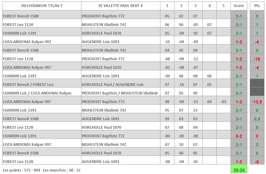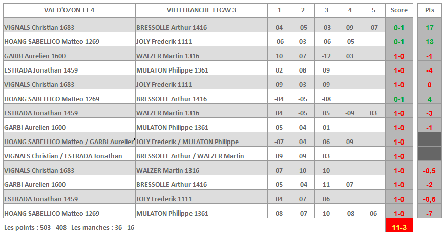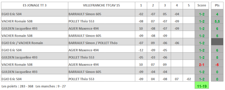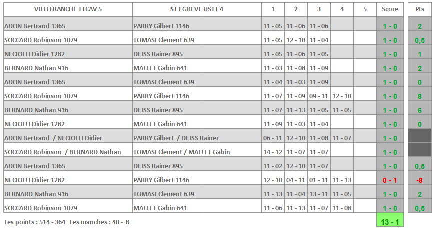 | VILLEFRANCHE TTCAV 5 | ST EGREVE USTT 4 |