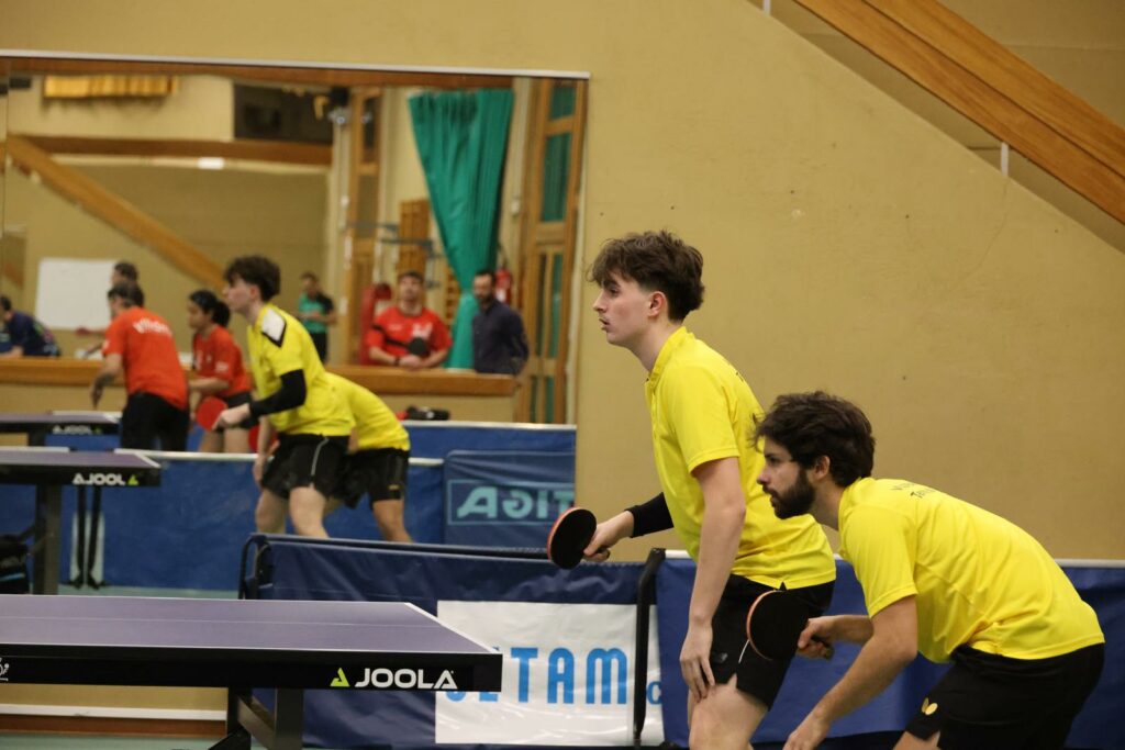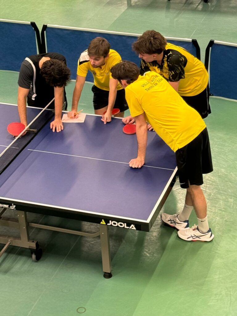 Place au jeu et au beau jeu ! Les Jaunes ont mené les débats tambour battant, auteurs d’un meilleur départ, les Caladois n’ont que rarement baissé la garde, une défaite logique d’Ethan GILLE en milieu de rencontre, un revers en double pour la paire FERRY / CLEMENT dont les automatismes restent à perfectionner, et enfin une petite contre performance en toute fin de rencontre de Clément peut être victime d’un relâchement compréhensible. Pour le reste les joueurs du TTCAV ont livré une superbe bataille à l’image d’un Anthony GARNIER, diminué mais qui s’est battu comme un beau diable. Thomas FERRY, l’âme du club, a su se transcender également, tout comme Ethan GILLE auteur d’un très beau début de saison sous ses nouvelles couleurs. Quant à Clément DAMOUR, il poursuit sa progression et dépasse désormais la barre de 1700 points. Il reste une rencontre à disputer mais la messe semble désormais dite, l’équipe fanion jouera en Pré nationale en seconde phase.