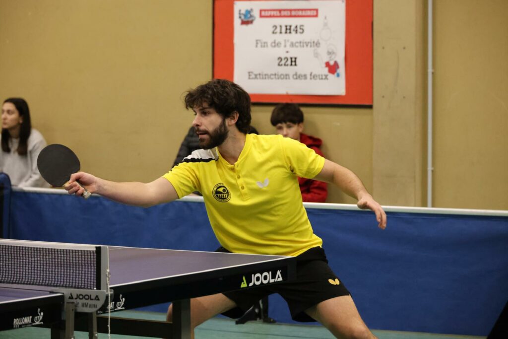 Si vous vouliez assister à des victoires Caladoises il ne fallait pas rater le début de la rencontre. En effet, les Jaunes ont gagné les 2 premières parties (2 jolies perfs d’ailleurs !) de la rencontre avant de voir les joueurs d’Ozon leur rouler dessus. Seul Arthur BRESSOLLE dont le niveau de jeu actuel m’impressionne a réussi à émerger durant le reste des débats. Frederik JOLY a réussi comme souvent à tirer son épingle du jeu face à mieux classé que lui. Nettement moins de réussite en revanche pour Martin WALZER qui continue de faire ses armes en Régionale 2 et pour Philippe MULATON qui est malheureusement dans le creux de la vague … vivement 2026 !