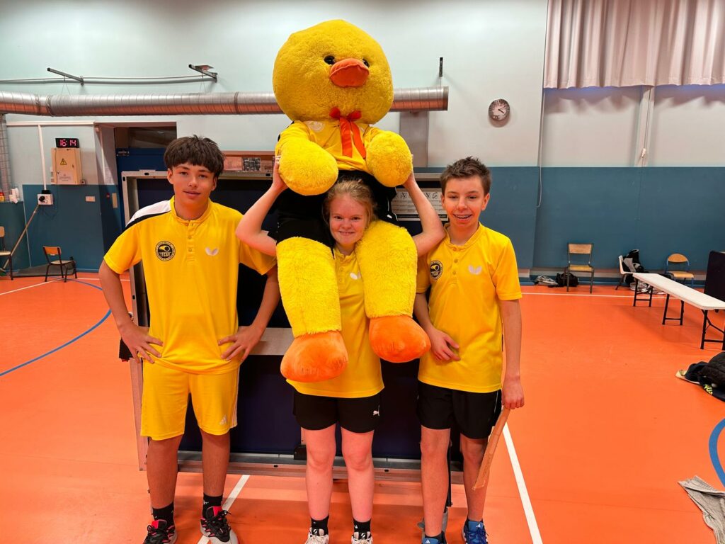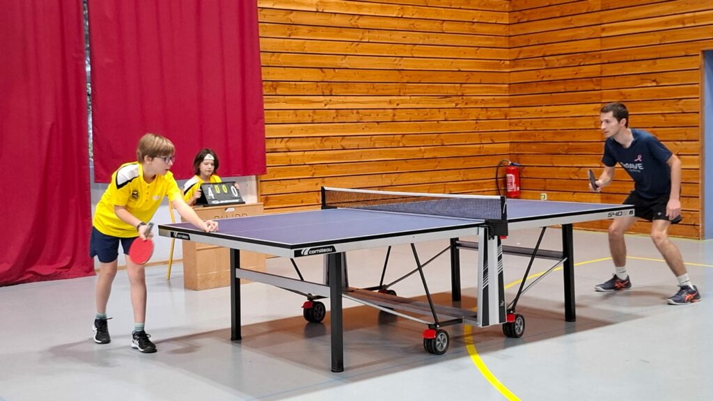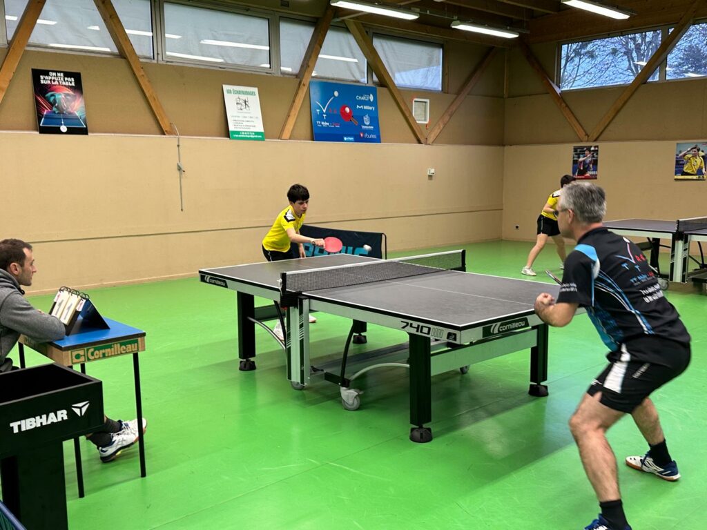 Sur le plan individuel, on aura une pensée pour Maël AGIER qui a vaillamment défendu ses chances mais sans succès malheureusement … enfin si associé en double avec Chloé FLAMAND il remporte le double. Eliott FOREST rapporte deux points à l’équipe tout comme Chloé « Basic Fit Girl » FLAMAND et ses muscles saillants … quant à Théo MACHABERT il enregistre 3 succès en simples !
