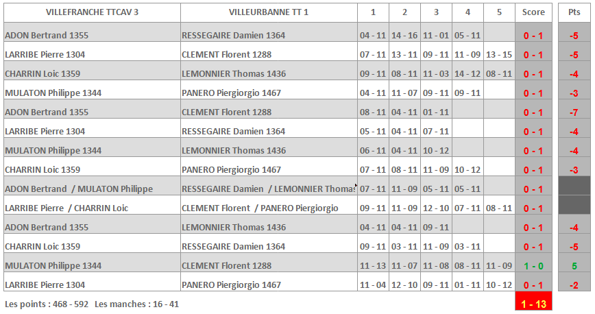 | VILLEFRANCHE TTCAV 3 | VILLEURBANNE TT 1 |