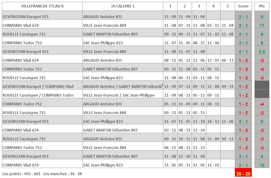 | 9 | COMPANIS Vlad 674 | vs | SAC Jean-Philippe 823 | +149 |
