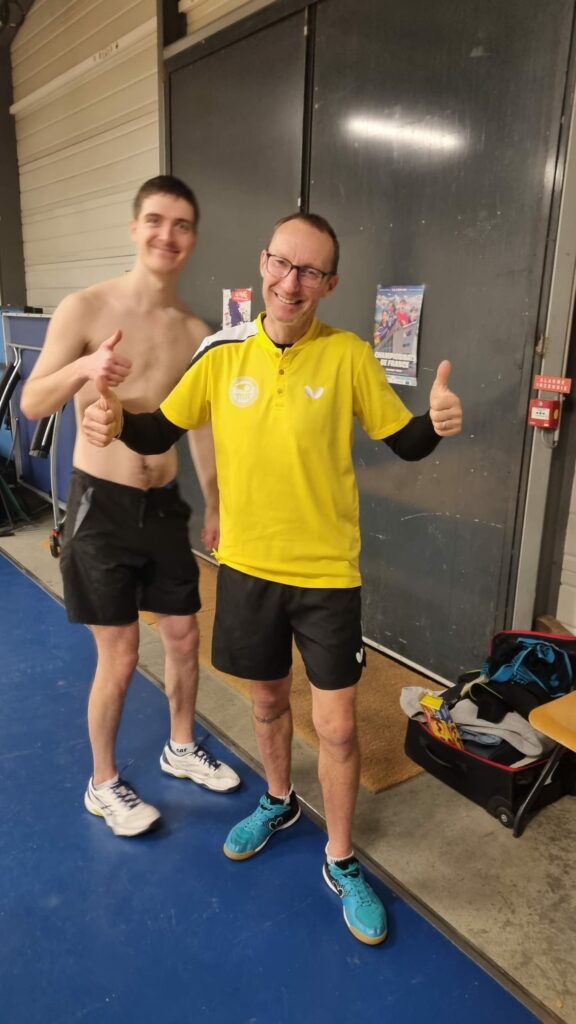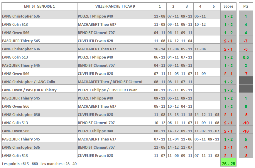Jean-Baptiste CHOLLET invaincu en première phase était dans un jour sans et ne fait qu’un plus le double et Benoît, le talentueux, réussit à rapporter 2 points et le double lui aussi.