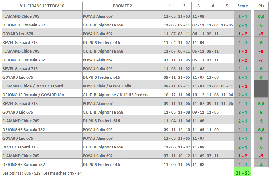 | VILLEFRANCHE TTCAV 10 | BRON TT 2 |