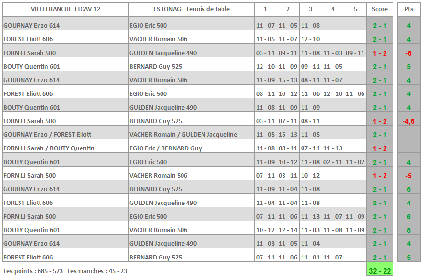 | VILLEFRANCHE TTCAV 12 | ES JONAGE Tennis de table |