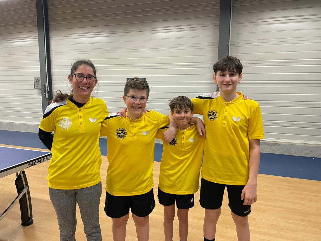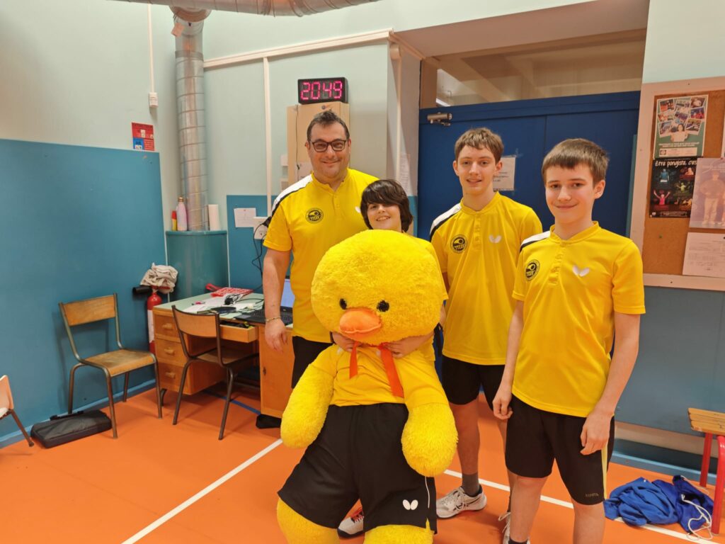 Large succès Caladois aux dépens de Jonage. Nos petits Jaunes se sont régalés ce dimanche en réalisant des cartons pleins à l’image d’Enzo GOURNAY, Eliott FOREST et Quentin BOUTY. Et si Sarah FORNILI a eu moins de réussite que ses jeunes coéquipiers, on ne saurait passer sous ses silences ses grands débuts dans l’univers impitoyable de la compétition. Des débuts marqués par une victoire obtenue au forceps en 5 manches, avec un 11-09 dans le set décisif. Un souvenir pour la vie ! J’espère que cette première a été saluée comme il se doit par les supporters !