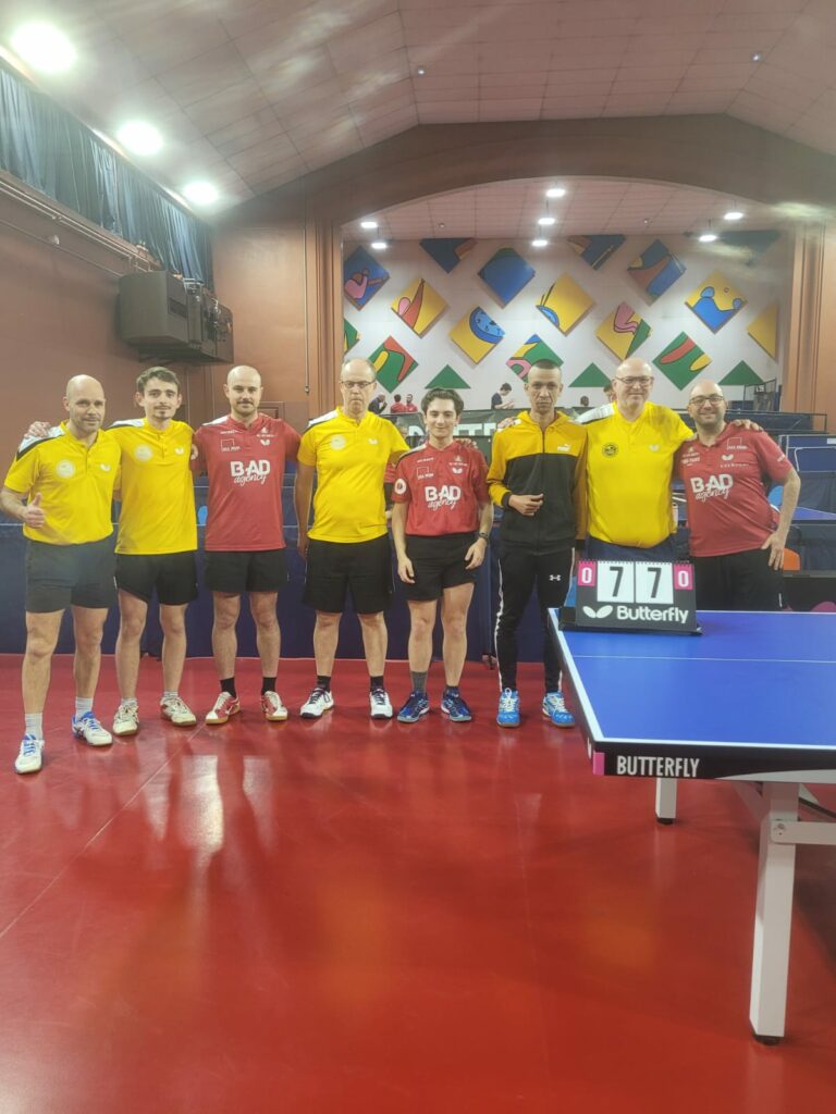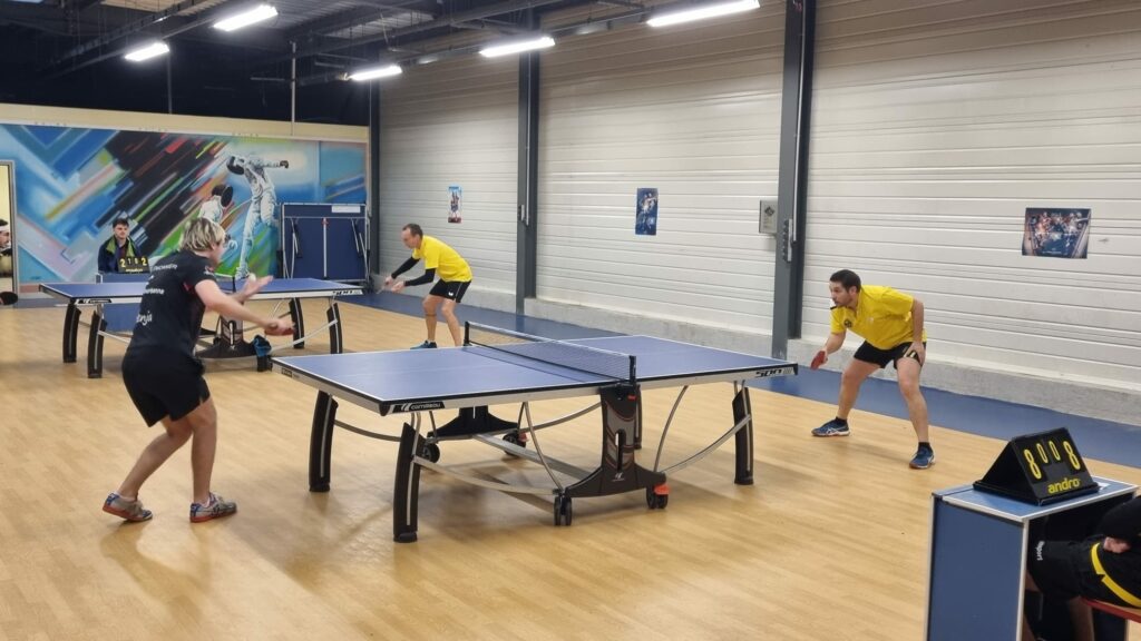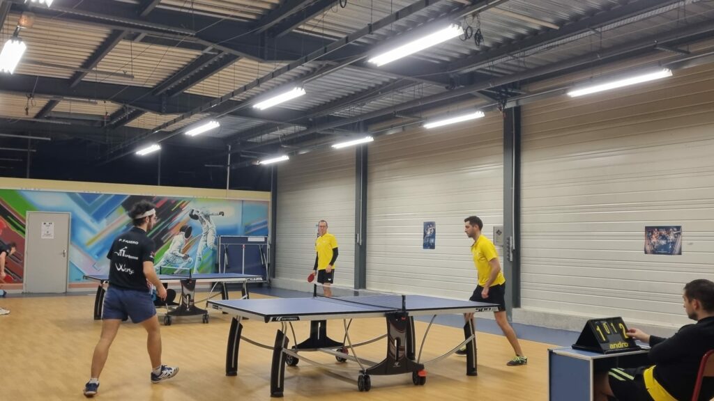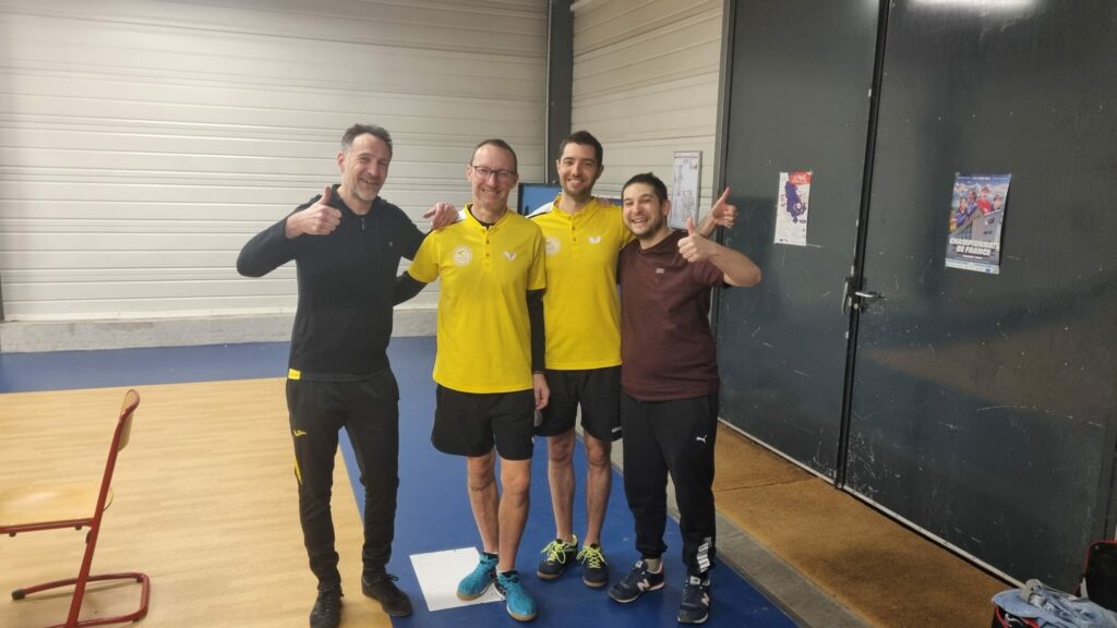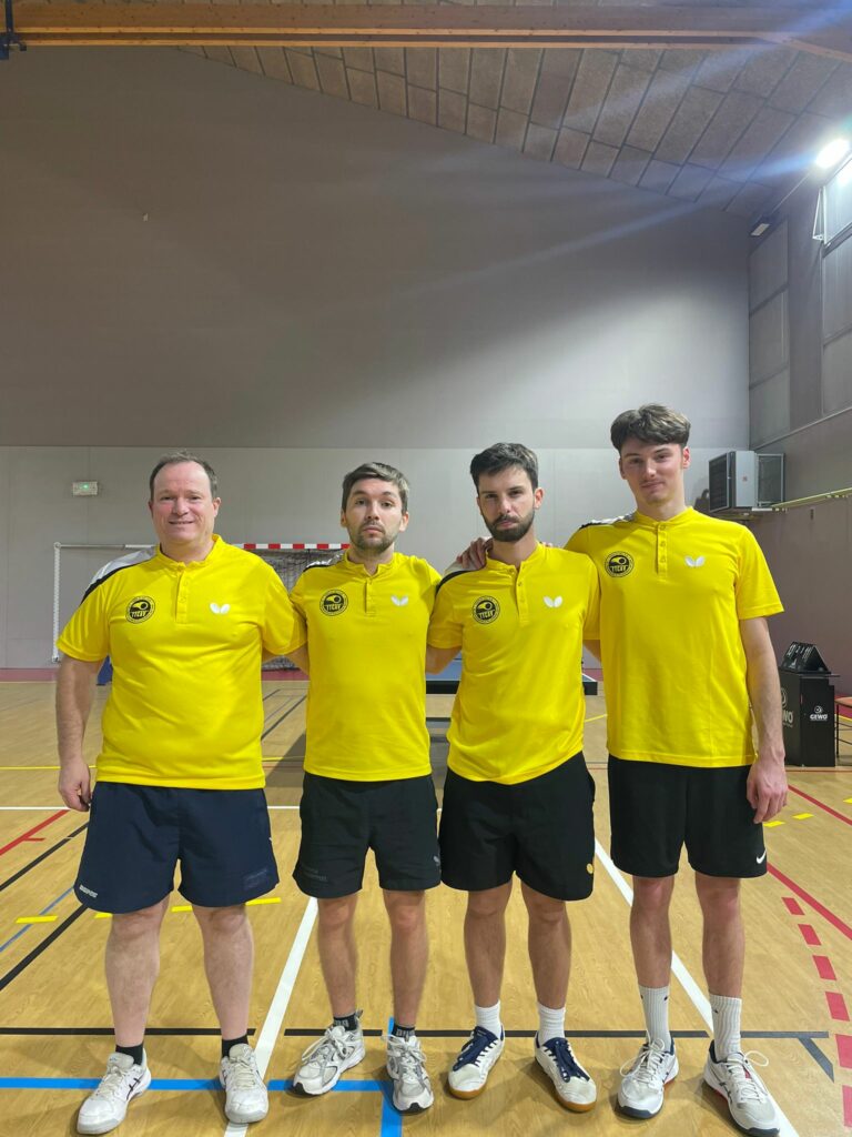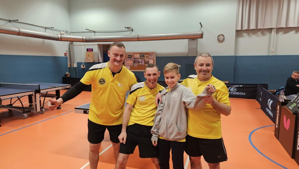 Décalée au 28 février, la rencontre s’est déroulée dans des conditions optimales, le gymnase n’étant occupée que pour abriter une seule rencontre ! Avec 2 équipes ? Moi je dirais 3, dans la mesure où pour les Jaunes étaient alignés AGIER, père et fils, soit Sébastien et Maël et les frères BARRAULT, Simon et Emile. Au final une rencontre à sens unique où les joueurs beaujolais n’ont concédé que 2 petites défaites à leurs adversaires du jour. Une très belle entame de championnat pour des Jaunes qui auront régalé leur public ce samedi !