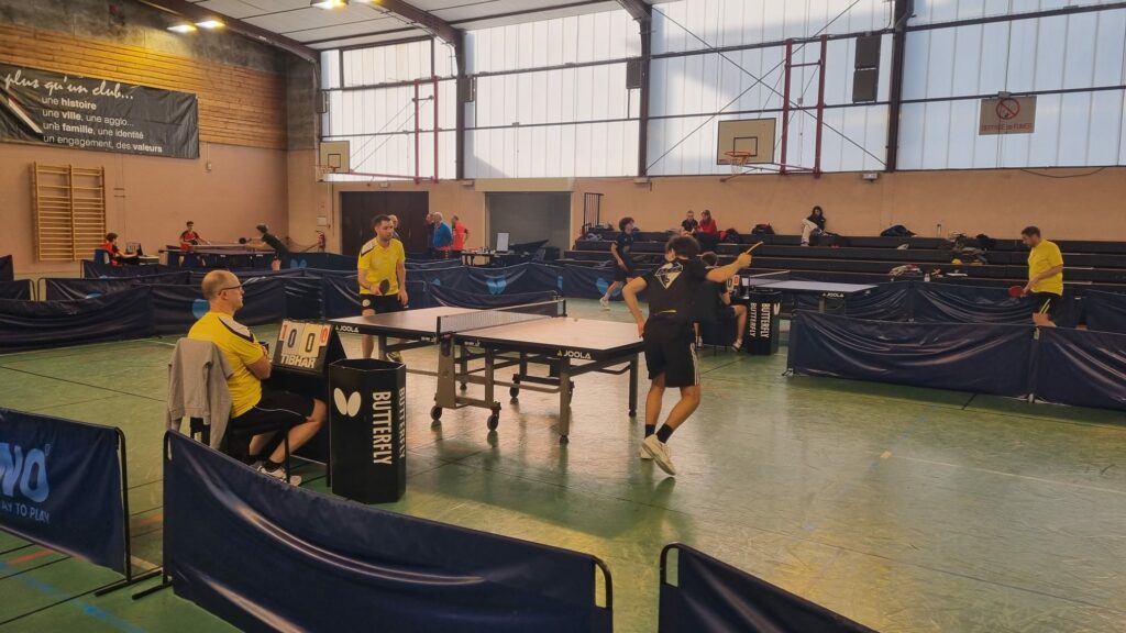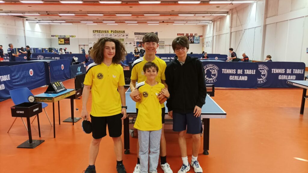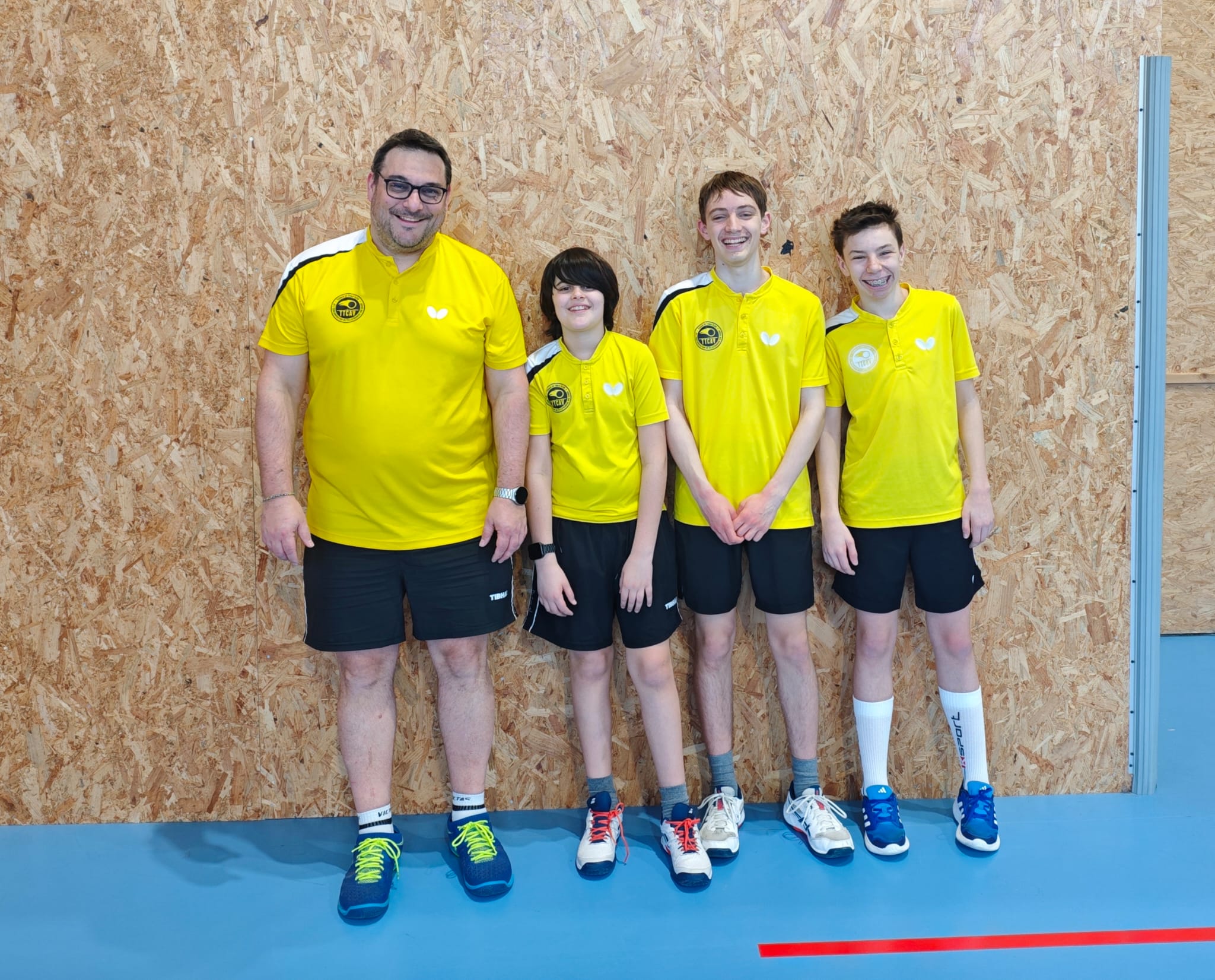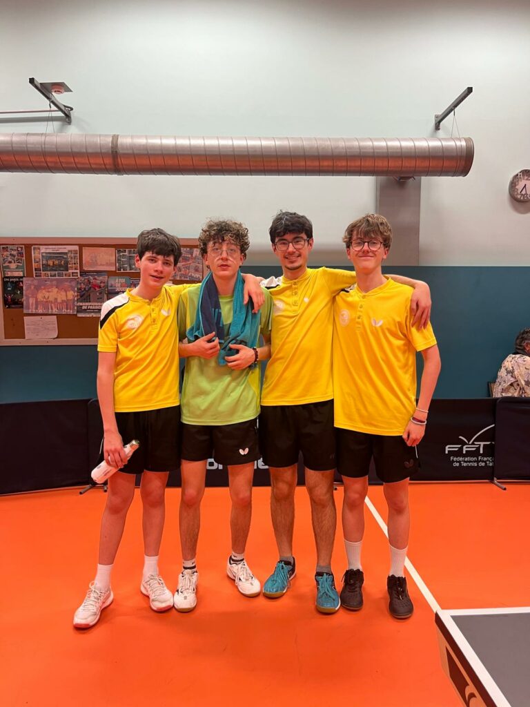 Dans cette équipe Vlad COMPANIS, réalise le score presque parfait avec un 4/4 en simples et s’est affirmé comme l’atout maître de l’équipe. Ses coéquipiers, Léo GOYARD (1 point), Simon BARRAULT et Quentin BOUTY (2 points chacun) ont fait ce qu’il fallait pour que leur équipe s’impose … de peu ! Mais la victoire n’en est que plus belle !