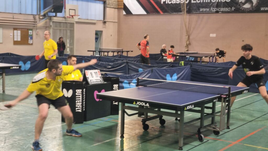 Très belle affiche que cette rencontre entre Villefranche et Cournon. Le public venu nombreux ne s’y est pas trompé. Les visiteurs mieux armés repartent avec une nette victoire mais laissent quelques plumes aux canaris beaujolais. Anthony GARNIER aura été l’homme du match avec 3 victoires, Thomas FERRY apportant le 4ème point à l’équipe et s’incline sur ses deux autres simples au 5ème set, Ethan GILLE aura lui aussi réussi à pousser l’un de ses adversaires bien mieux classé dans la manche décisive … mais sans succès malheureusement.